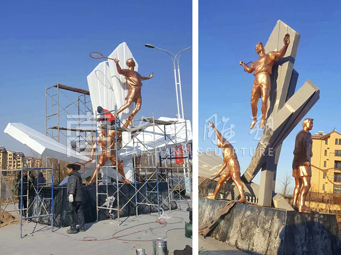 不銹鋼景觀雕塑-雕塑亮化-運動雕塑小品-打羽毛球雕塑景觀小品-太尚雕塑-運動景觀雕塑